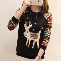 顺崇2018春装韩版新款大码长袖圆领个性小鹿印花长袖T恤女