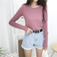 春秋新款洋气U领长袖T恤修身显瘦内搭大领口打底衫纯色女装潮