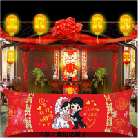 三维工匠新款十字绣枕头一对送新红色蕾丝单人卧室双人长枕套印花套件 蔓沙粉色百年好合永结同心加枕心