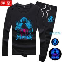 潮至学生套装新款衣服2018春季动漫服装美国队长战士服复仇者联盟系列印花长袖T恤休闲裤套装