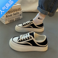 SUNTEK小众厚底小白帆布板鞋女秋季ins潮2023年新款黑色百搭休闲运动鞋