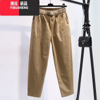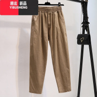 YIBUSHENG水洗弹力棉休闲裤女春季薄款九分哈伦裤高腰宽松显瘦百搭萝卜裤