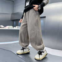男童加绒裤子春秋冬款儿童冬季一体绒运动裤新款大童条绒裤潮