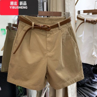 YIBUSHENG薄款卡其色西装短裤女季2024韩版高腰显瘦宽松直筒阔腿休闲裤