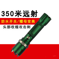 手电筒强光充电远射350米调焦户外家用迷你骑行防水防身打猎绿色手电+电池+充电器