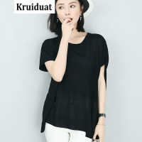 Kruidvat2017春装短袖宽松针织衫时尚蝙蝠衫女T恤M2黑色均码