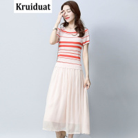 Kruidvat17夏季气质新款连衣裙短袖半高领条纹针织M6