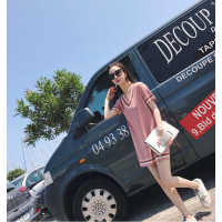 夏季韩版新款甜美V领针织短裙短袖宽松休闲打底A字连衣裙女