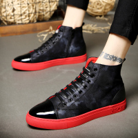 春季红色精神小伙高帮鞋男韩版潮流嘻哈鞋子男潮鞋高邦板鞋男棉鞋