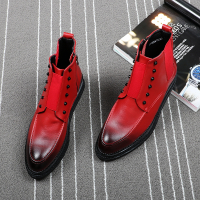 发型师尖头皮鞋韩版休闲男士高帮鞋男生真皮中帮英伦风夜店婚礼潮短靴子