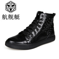 2017秋季新款韩版系带休闲高帮鞋男士时尚街舞学生板鞋个性铆钉黑白潮鞋