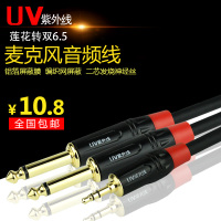 册视3.5转双6.5音频线一分二转换头双声道公对公6.35mm大二芯连接线1.5米条