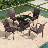 苏宁 金菲罗格 办公家具 户外阳台藤编休闲桌椅组合 四椅+一圆桌