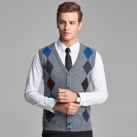 秋冬新款中年毛线背心男中老年爸爸装坎肩羊毛开衫无袖针织马甲