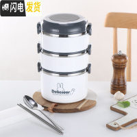 三维工匠饭盒密封大容量304不锈钢学生便当盒多层上班族保温便携式饭缸 2.4三层灰黑色(送餐具)