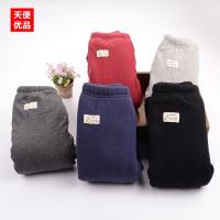 娉语男女童棉裤2018冬新款童裤儿童宝宝纯棉螺纹长裤三层加绒加厚裤子