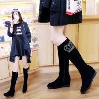 长筒靴女靴2017秋冬款加绒显瘦内增高磨砂高筒靴平底过膝长靴女鞋