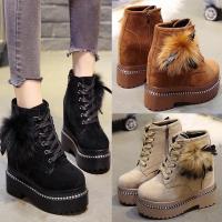女靴粗跟单靴2017新款女鞋13cm内增高短靴马丁靴女英伦靴子棉鞋冬