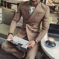 男装新款西服套装纯色修身西服型男气质单扣西装两件套