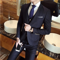 西服套装英伦风单扣纯色男士西装三件套商务修身时尚小西装男装