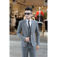 原单秋季男式西服套装三件套韩版修身伴郎结婚礼服灰色