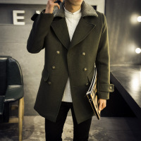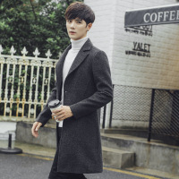 秋冬新款韩版时尚男士毛呢大衣男装中长款毛呢子外套修身男风衣