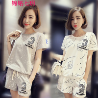 锦铭七玥2018新款夏季短袖女士睡衣韩版女生休闲宽松运动学生居服套装春