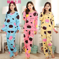 锦铭七玥2018春夏季女士薄款长袖睡衣长裤卡通奶牛女生休闲女款居服套装