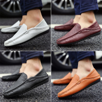 男士休闲皮鞋夏季透气韩版软面皮懒人套脚商务中老年爸爸男鞋