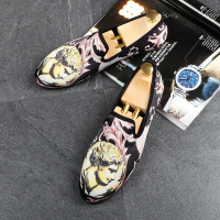 男士豆豆鞋夏季透气软底懒人单鞋时尚个性印花休闲皮鞋发型师潮鞋