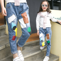207夏季童装韩版男女童精品补丁牛仔裤潮宝宝中童裤秋牛仔色