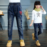 2017新款欧美秋装儿童弹力牛仔裤中大女童纯棉牛仔长裤蓝色