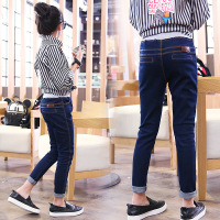 2017秋季新款欧美童装潮儿童修身牛仔裤女童纯棉弹力牛仔长裤蓝色