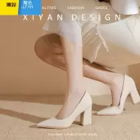 聚范法式米白色高跟鞋女新款舒适百搭女鞋软底不累脚粗跟黑色单鞋