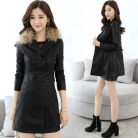 莞馨2017秋冬毛领pu皮衣女中长款修身气质显瘦风衣外套