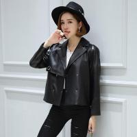 春季海宁真皮皮衣女绵羊皮单皮短款西装领宽松外套黑色CYDDWQE
