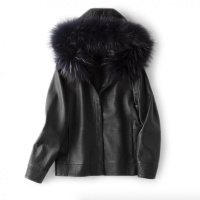 莞馨(wanxin)新款2016秋冬海宁新款皮革大衣直筒加厚短装毛领皮衣夹克外套女潮