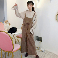 秋装女装韩版ulzzang系带宽松百搭阔腿裤背带裤休闲裤长裤九分裤