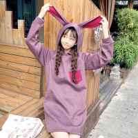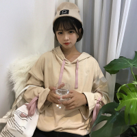 秋装女装韩版中长款学生套头连帽兔耳朵慵懒加厚卫衣ulzzang薄款