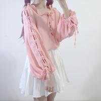 秋装女装韩版长袖衬衣上衣绑带灯笼袖雪纺衬衫ulzzang学生小心机