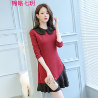 锦铭七玥2018春季新款女装娃娃领拼接长袖连衣裙 修身显瘦裙子