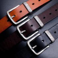 男士双面头层3.5厘米宽牛皮针扣商务皮带男款纯钢扣裤腰带