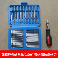 异型螺丝批组套电动螺丝刀批头套装改锥起子刀头一字十字六角Y型-加长50件套批头组套+棘轮手柄