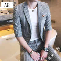 AR2018西服男夏秋季新款款英伦时尚条纹潮男中袖小西装韩版上衣修身条纹中袖