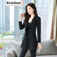 奈琴尔2017秋季新款韩版中长款小西装女修身西服女式外套女装 黑色 XXL