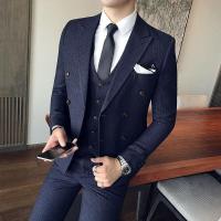 双排扣西服套装男士新郎结婚韩版修身伴郎礼服休闲英伦夜场小西装