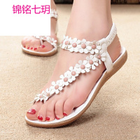 锦铭七玥2017夏季新款平跟女凉鞋 夹脚套趾碎花朵平底鞋韩版女凉鞋