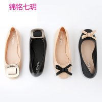 锦铭七玥韩版方头蝴蝶结金属扣包头平底单鞋防滑浅口平跟果冻女凉鞋