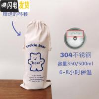 三维工匠ins韩国自制可爱简约清新小熊保温杯学生水瓶便携随手杯男女情侣 500(大)
