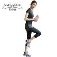 速干撞色褶皱瑜伽服女收腰显瘦裸感瑜伽运动户外健身上衣